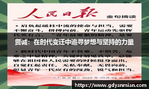 贾诚,作为一位在时代变迁中不断追寻梦想的人物,他的故事不仅是个人奋斗的写照,更是对坚持与信念的深刻诠释。在这个快速发展的社会中,人们面临着各种挑战和机遇,而贾诚以其坚定的信念和不懈的努力,成为了许多人心中的榜样。本文将从四个方面对贾诚的经历进行探讨:他所处时代的变迁、追寻梦想过程中的艰辛与坚持、对个...